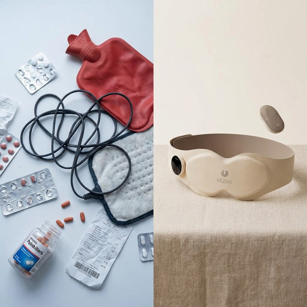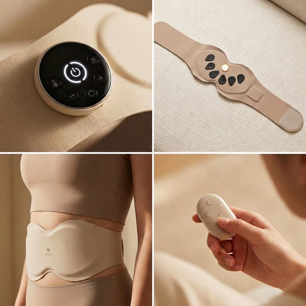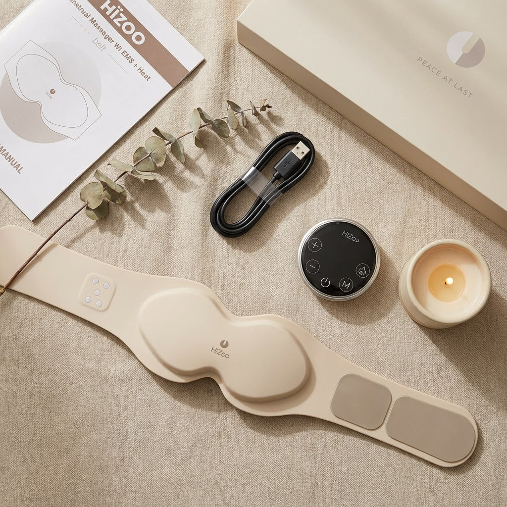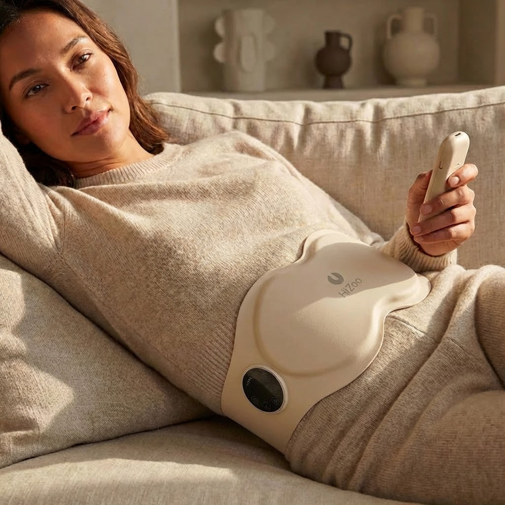 The HiZOO Period Relief Belt is a cordless, wearable therapeutic device that combines dual-zone EMS muscle stimulation with three-stage heat therapy. It’s built on the same electrical muscle stimulation technology used in professional physiotherapy and sports recovery — refined and calibrated specifically for menstrual pain.